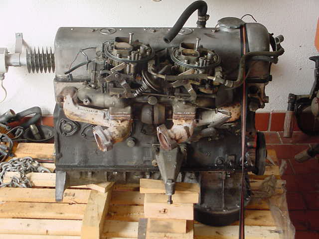 Ein entsprechender Motor wurde im Sommer 2000 gekauft und anschließend die Umbauarbeiten begonnen. Bevor der eigentliche Umbau am Fahrzeug begonnen wurde, wurde der Motor mit Hilfe der Teile unseres Schlachtfahrzeugs angepaßt, da fast alle Anbauteile getauscht werden mussten. So wurde auch eine neue Schwungscheibe und eine neue Kupplung beschafft, auch der Ansaugadapter von den Vergasern zum Luftfilter sowie das Auspuffsammelstück wurden vorbereitet. Die Schwungscheibe wurde dann durch einsetzen eines Teiles in die vorhandene, eine Unwucht bildende Nut sowie anschließendes Auswuchten auf die für den M130-Motor erforderliche Neutral-Wucht gebracht. Außerdem mussten die Bohrungen der sechs Befestigungsschrauben zur Kurbelwelle aufgebohrt werden, da im M130-Motor größere Befestigungsschrauben zum Einsatz kommen.
