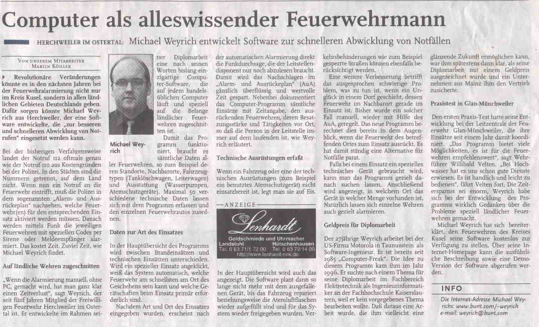 Pressebericht in der RHEINPFALZ vom 30.01.1999 (bitte anklicken):