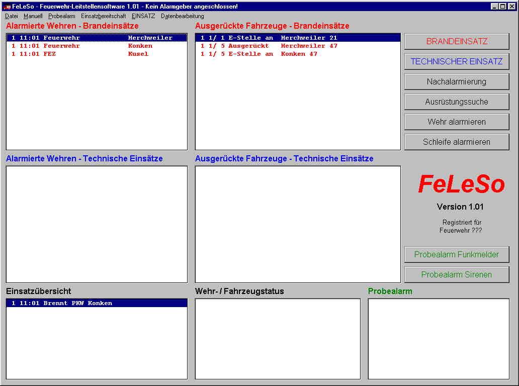 Feuerwehr-Leitstellensoftware FeLeSo Version 1.01