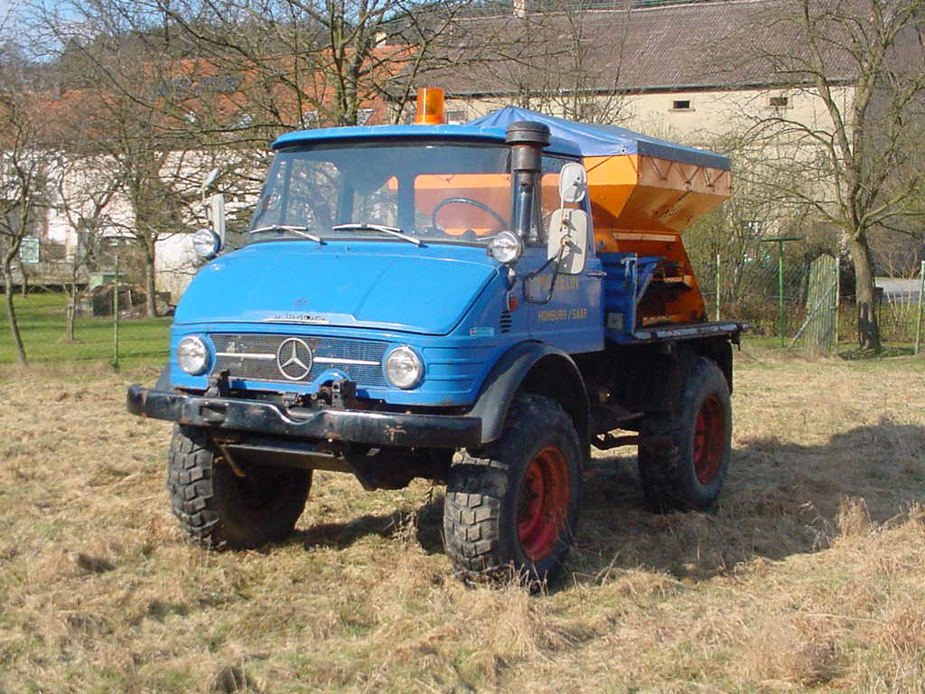 Der Unimog lief im Michelin-Reifenwerk in Homburg/Saar als Winterdienstfahrzeug. Er wurde am 24. Dezember 1970 fertiggestellt (Datum im Fahrzeugbrief) und am 5. Januar 1971 erstmals zugelassen. Bereits 1975 wurde er vorübergehend stillgelegt und verkehrte seitdem nur noch werksintern. Schneepflug und Streuer waren immer angebaut.