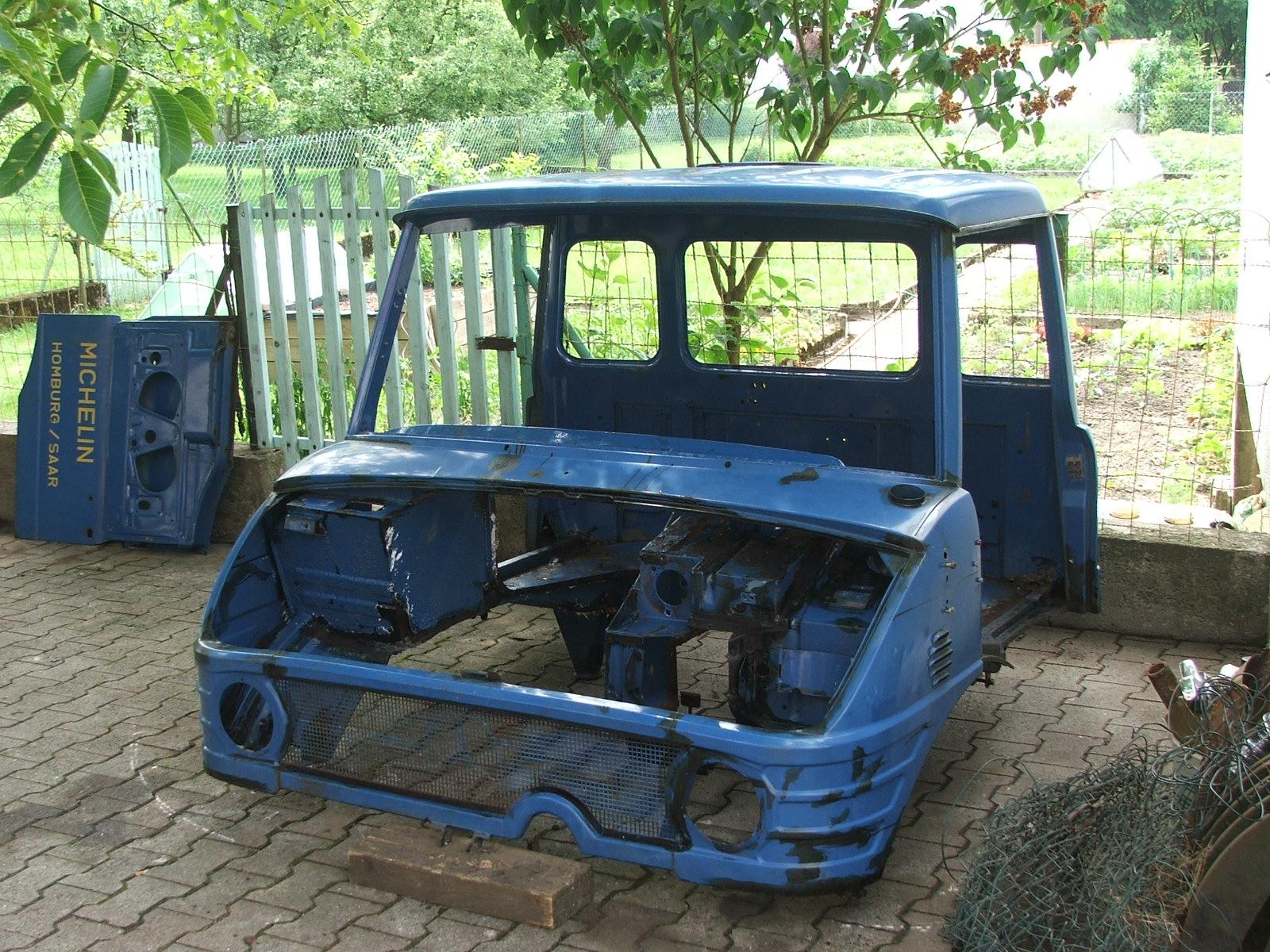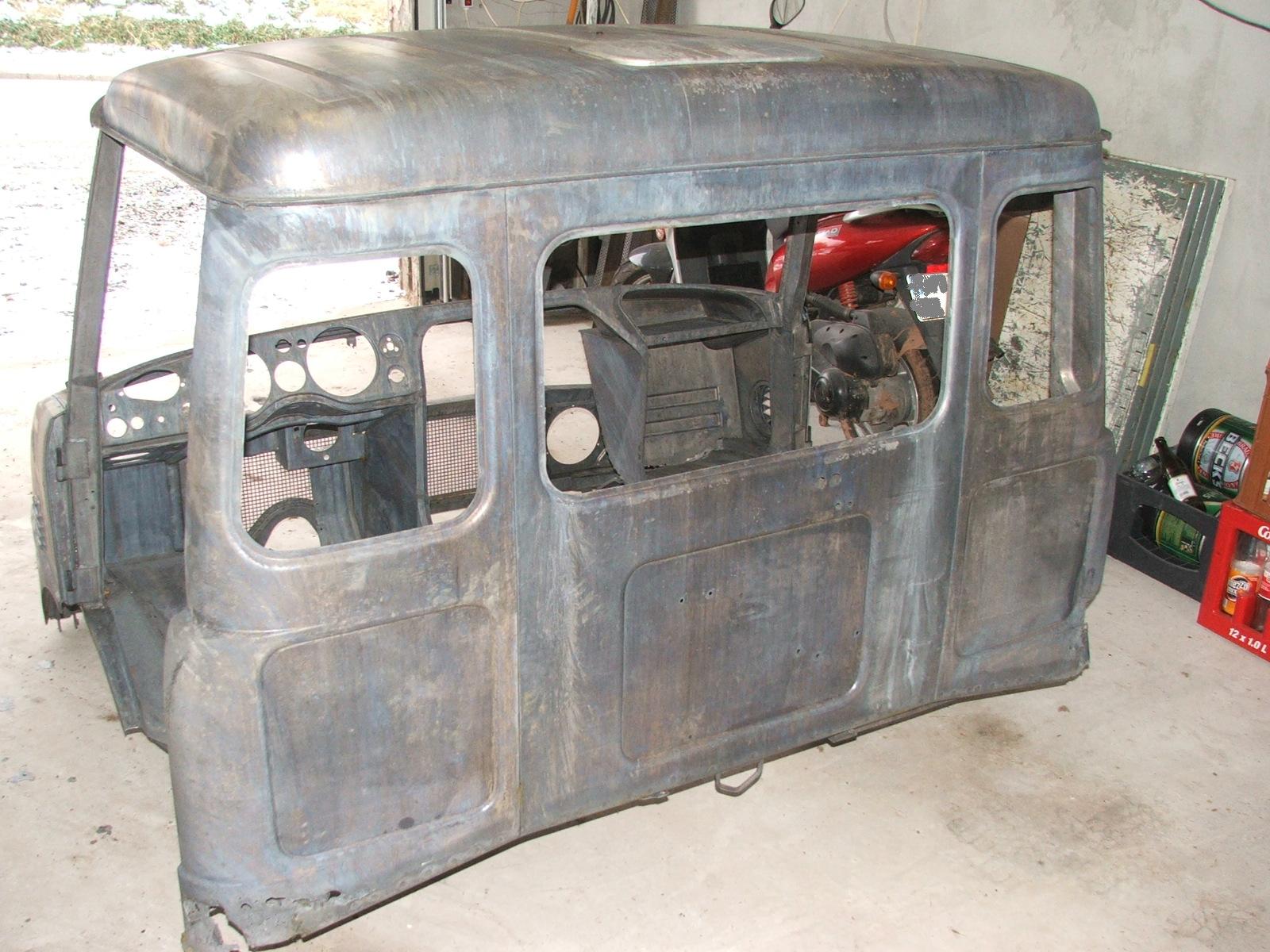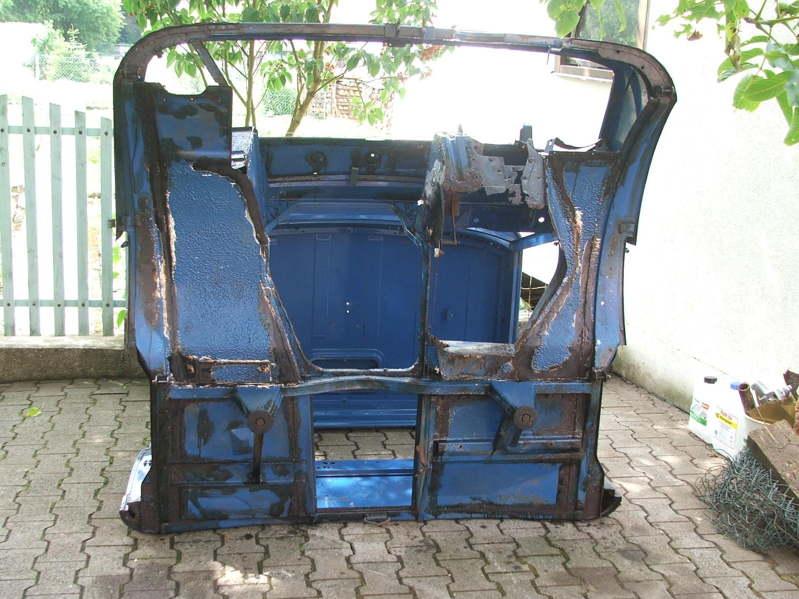 Zerlegung des Fahrerhauses, hier Ansichten nach dem auseinanderbauen und reinigen per Heißdampf, teilweise wurde schon mit Rostumwandler vorbehandelt. Das komplette Fahrerhaus sollte eigentlich zum sandstrahlen und anschließenden schweißen.