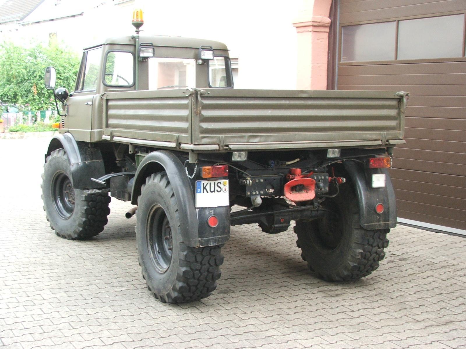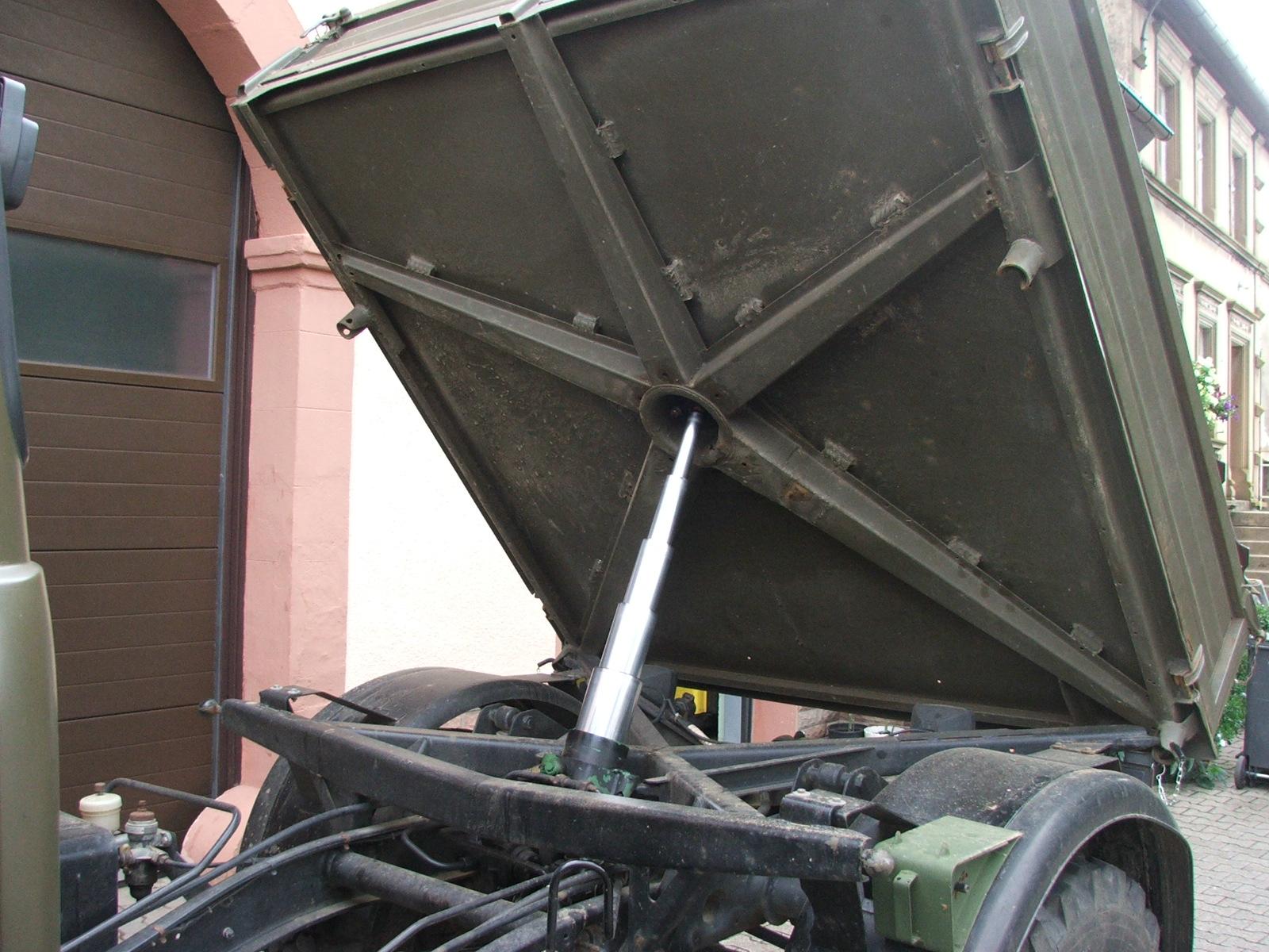 Arbeitsscheinwerfer an Fahrerhausrückwand und am Heck unter der Kipppritsche (nicht original)