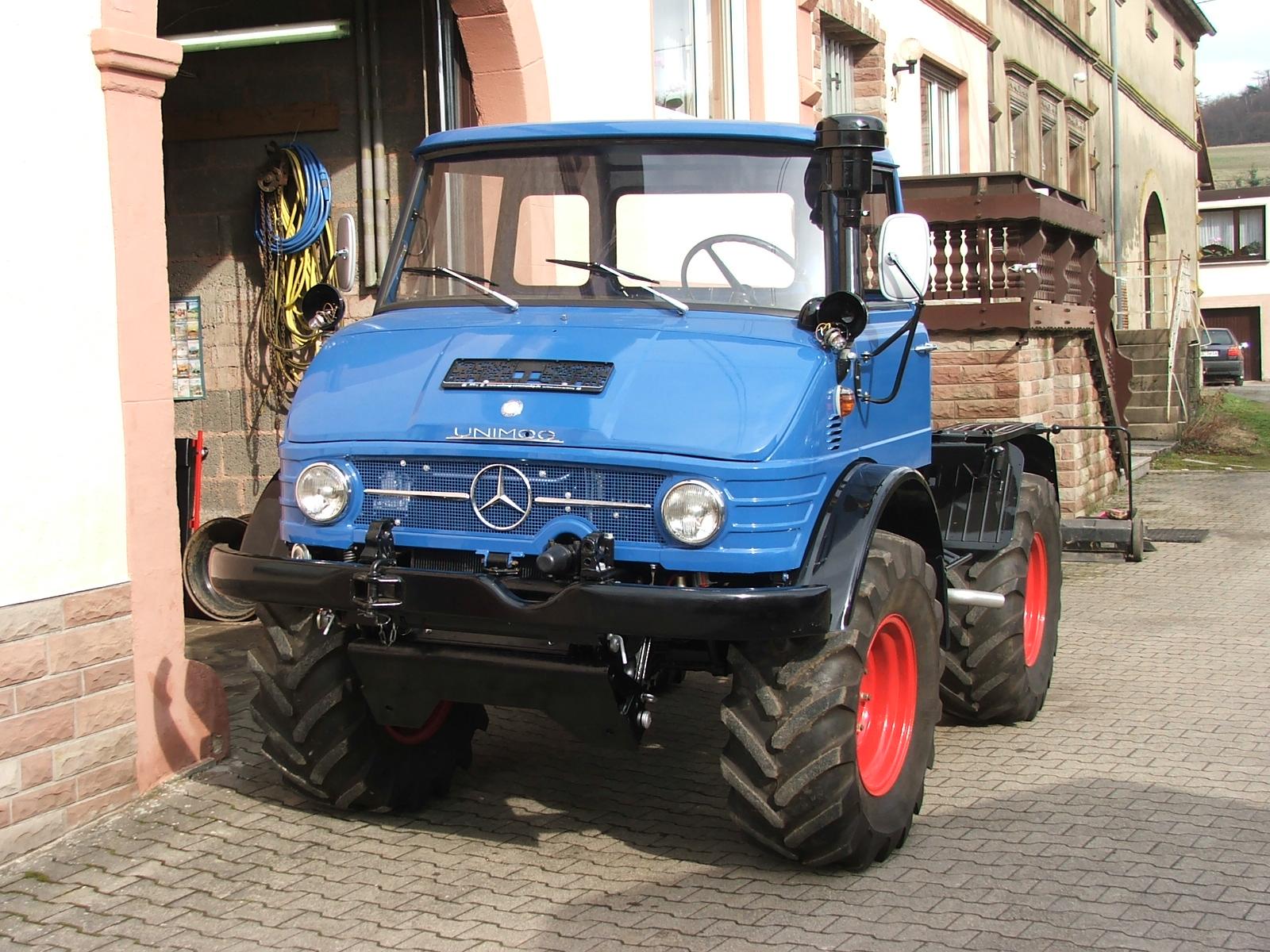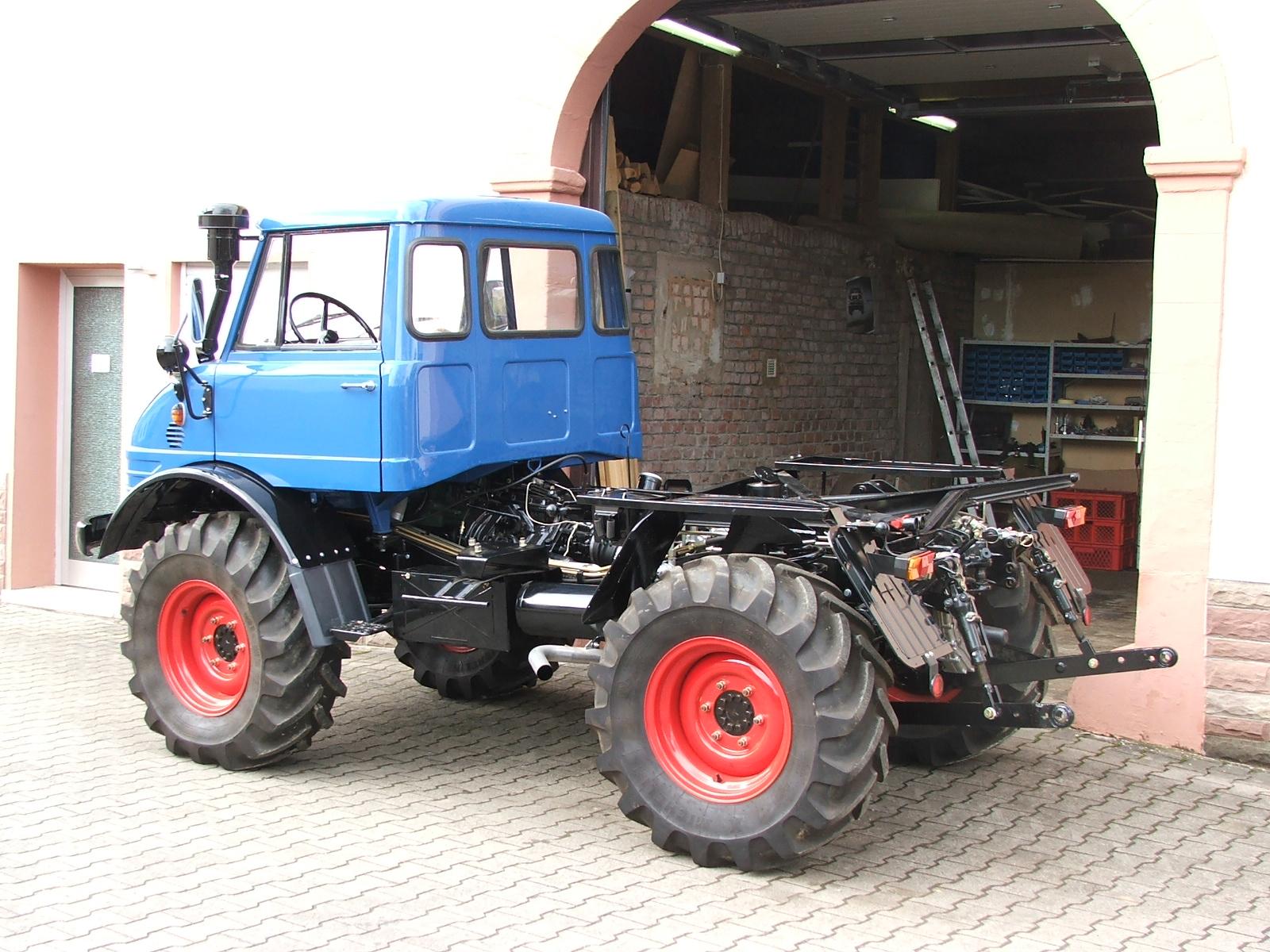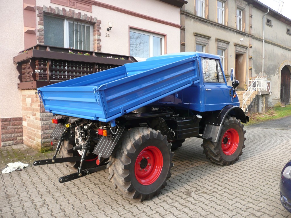 Inzwischen wurde noch die Hydraulik zur ehemals für den 406er lieferbaren Vollausstattung aufgerüstet, also zwei doppeltwirkende Anschlüsse vorn und hinten sowie druckloser Rücklauf vorn und hinten. Nach den ersten Probefahrten, unter anderem zum Treffen der Regionalgruppe Pfalz in Esthal, zeigten sich noch Probleme mit dem Anlasser, so dass dieser wieder ausgebaut und einer kleinen Überholung unterzogen wurde, hier waren das Messingritzel und die Kupplung beschädigt. Ebenso kam noch eine Bosch-Austausch-Lichtmaschine in den Unimog.